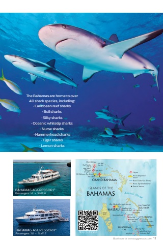 The Bahamas are home to over 40 shark species, including:Book now at www.aggressor.com 11%u00b7 Caribbean reef sharks%u00b7 Bull sharks%u00b7 Silky sharks %u00b7 Oceanic whitetip sharks %u00b7 Nurse sharks%u00b7 Hammerhead sharks%u00b7 Tiger sharks%u00b7 Lemon sharksWATCH VIDEOBAHAMAS AGGRESSOR I%u00aePassengers: 14 %u2022 Staff: 6BAHAMAS AGGRESSOR II%u00aePassengers: 20 %u2022 Staff: 7
